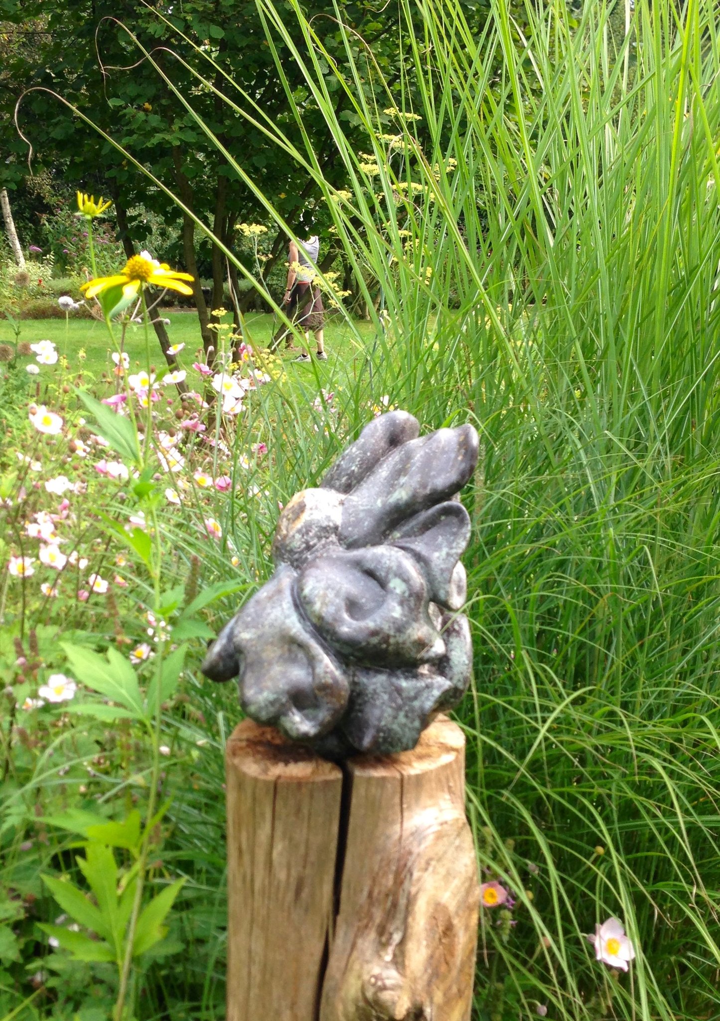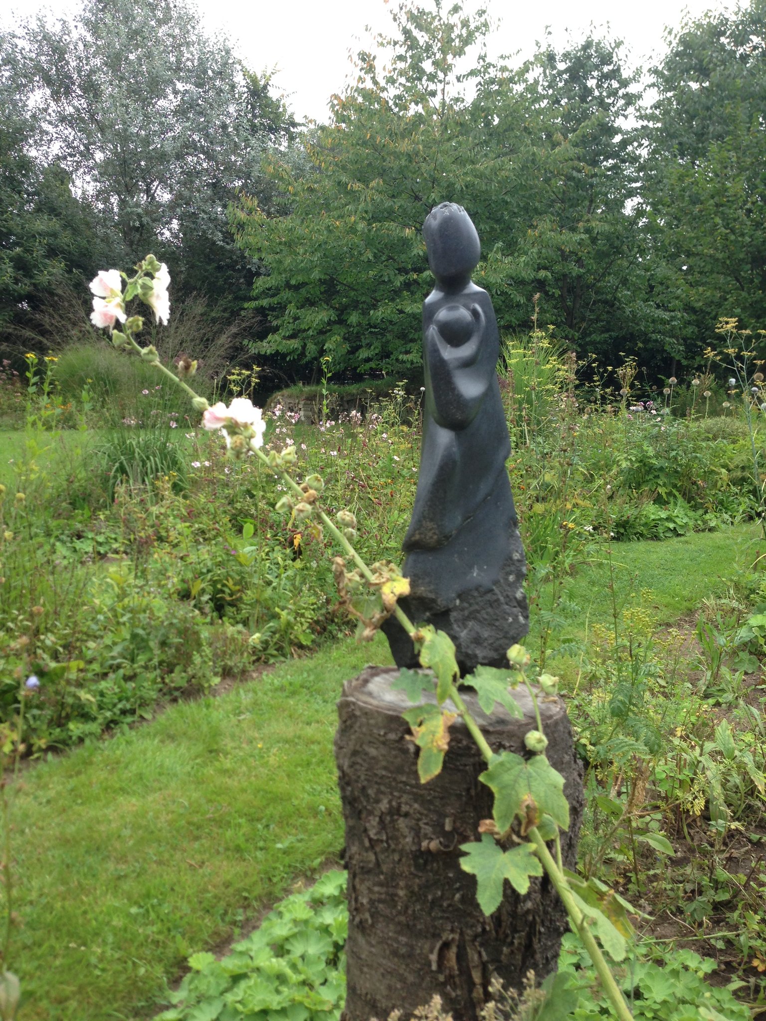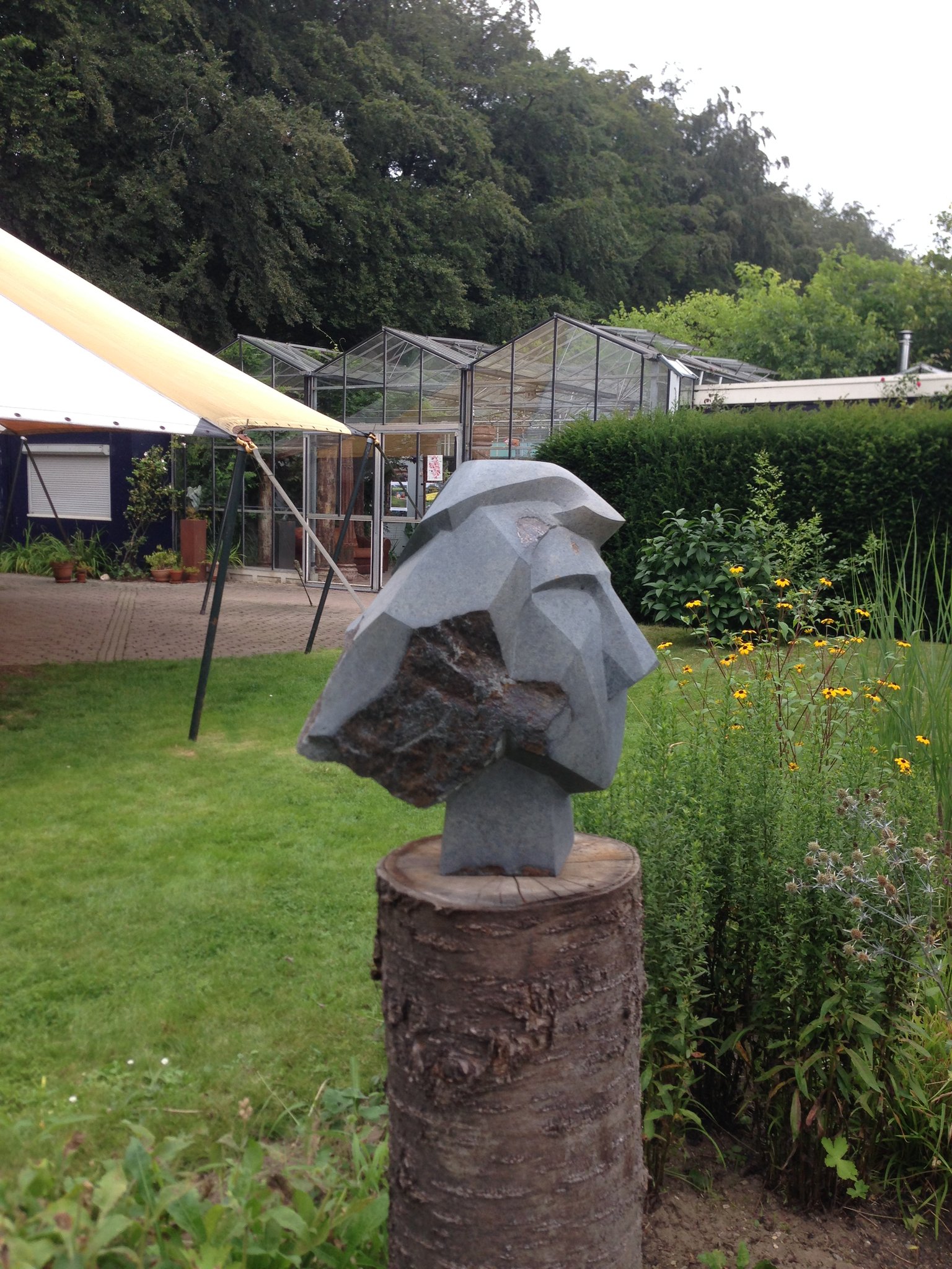 Tentoonstelling van Beeldhouwen Nijmegen in de bloementuin van de Hortus Nijmegen
