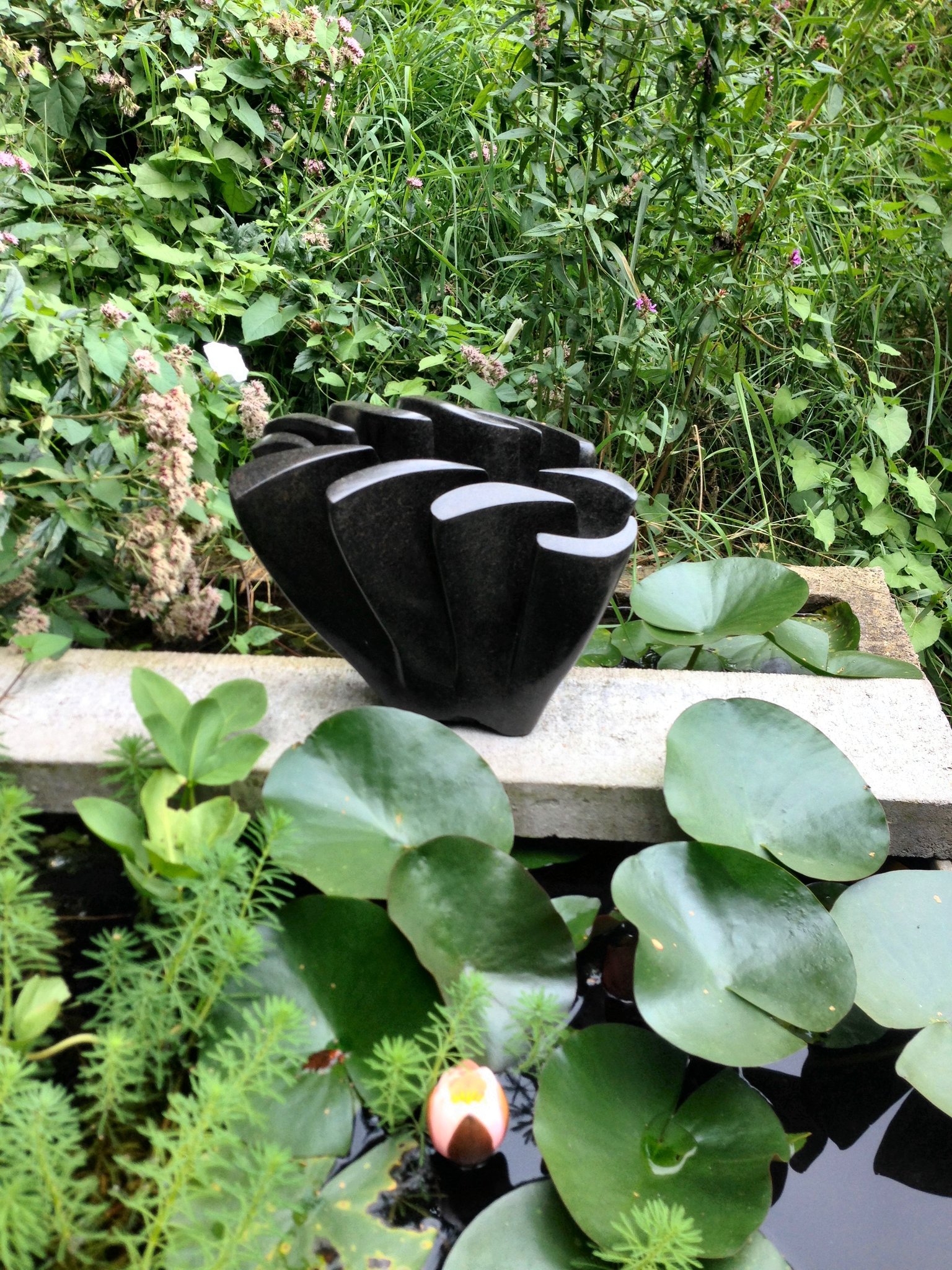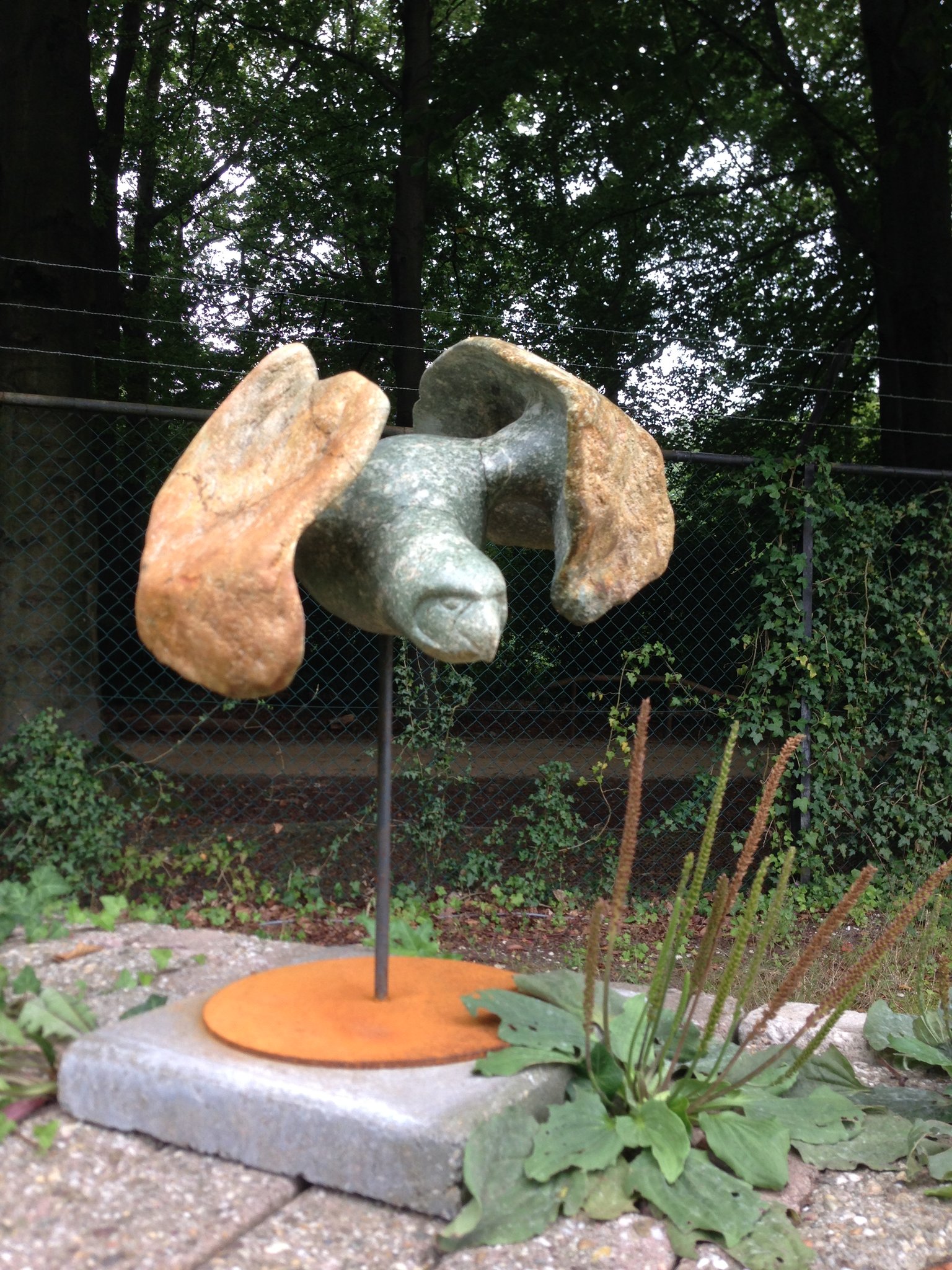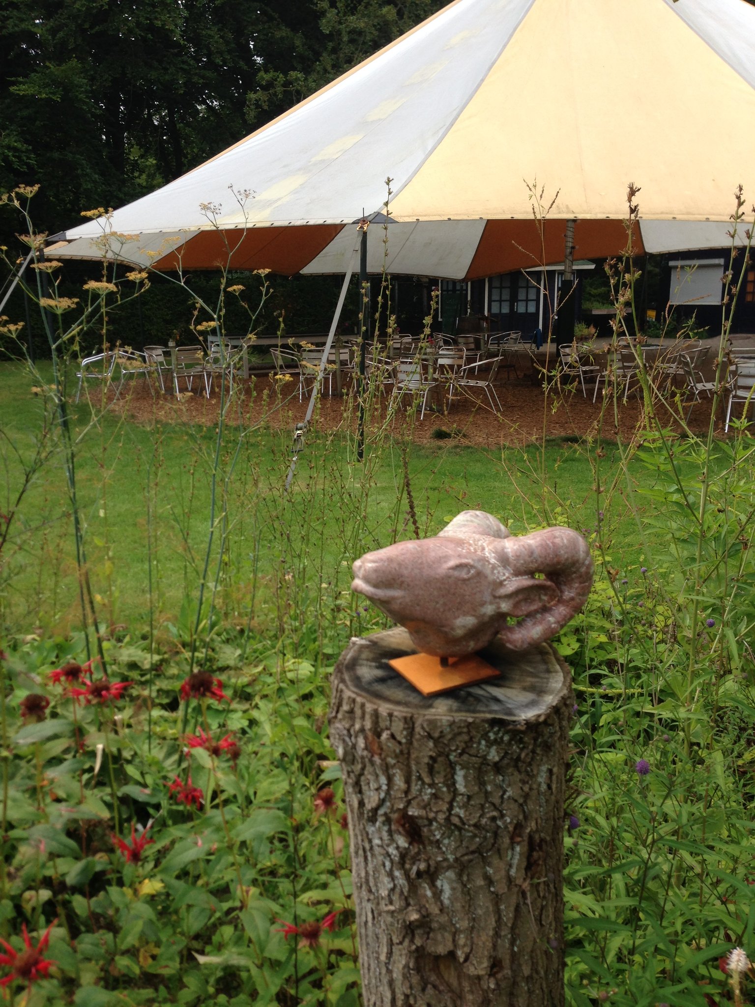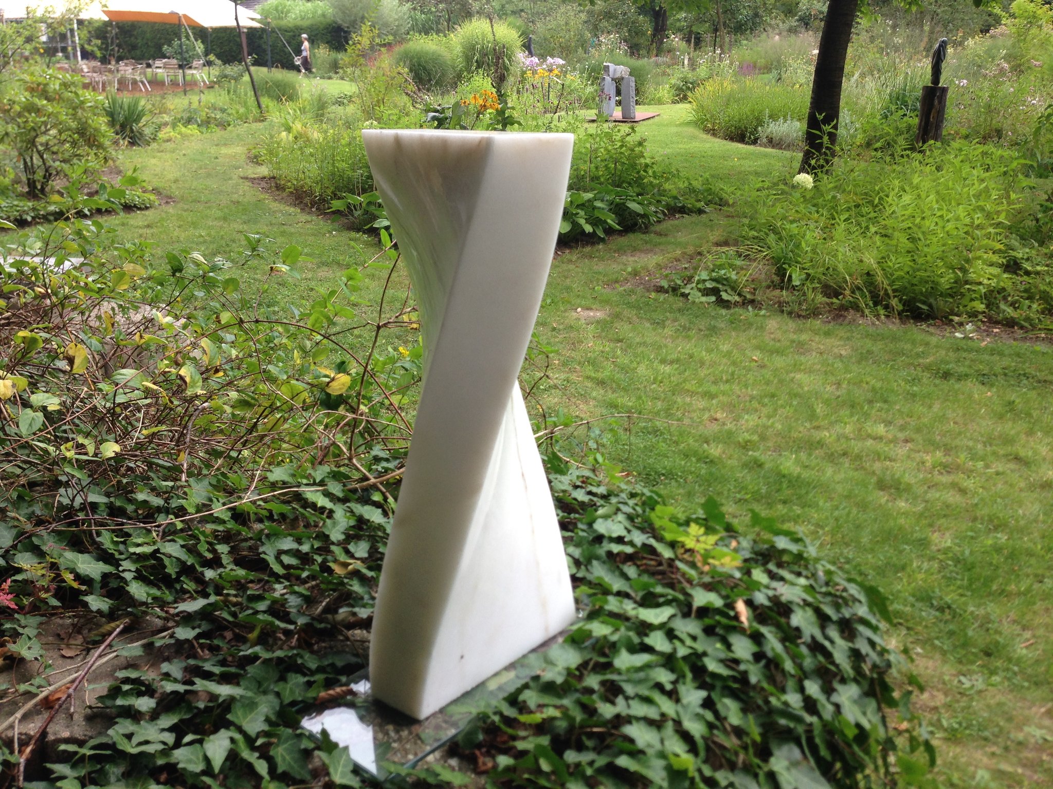 Tentoonstelling van Beeldhouwen Nijmegen in de bloementuin van de Hortus Nijmegen